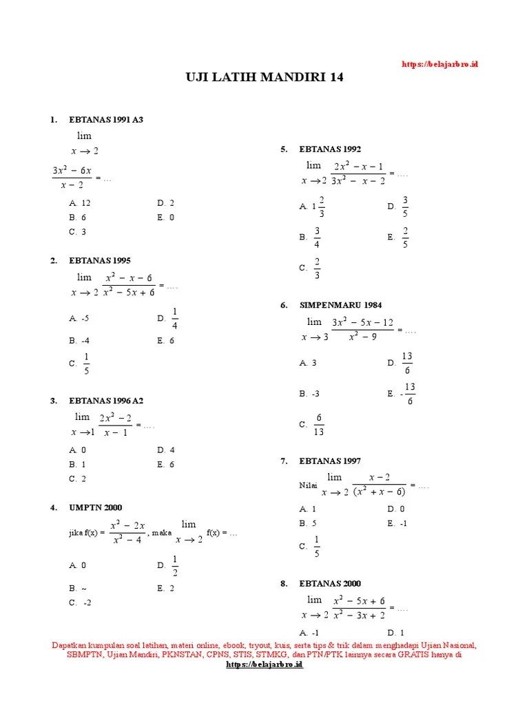 Dibawah ini merupakan jenis soal dengan materi limit yang sering keluar saat un.